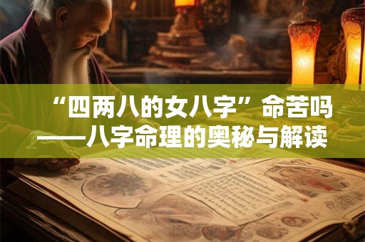 八字,又称生辰八字,是中国传统文化中一种重要的命理学说。它通过分析人的出生年、月、日、时所对应的天干地支,来推测人的性格、命运等。在八字命理中,常常听到“四两八的女八字”这一说法,这样的八字命苦吗?本文将带领大家揭开八字命理的奥秘,解读“四两八的女八字”的命理含义。