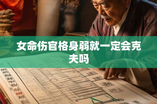 在我国传统文化中,命理学是一门博大精深的学问,其中关于女命伤官格身弱是否一定会克夫的问题,一直是人们关注的焦点。下面,我们就来探讨一下这个问题。˃ 开头描述:˃ 在古老的命理学中,女命伤官格身弱的说法让人心生...